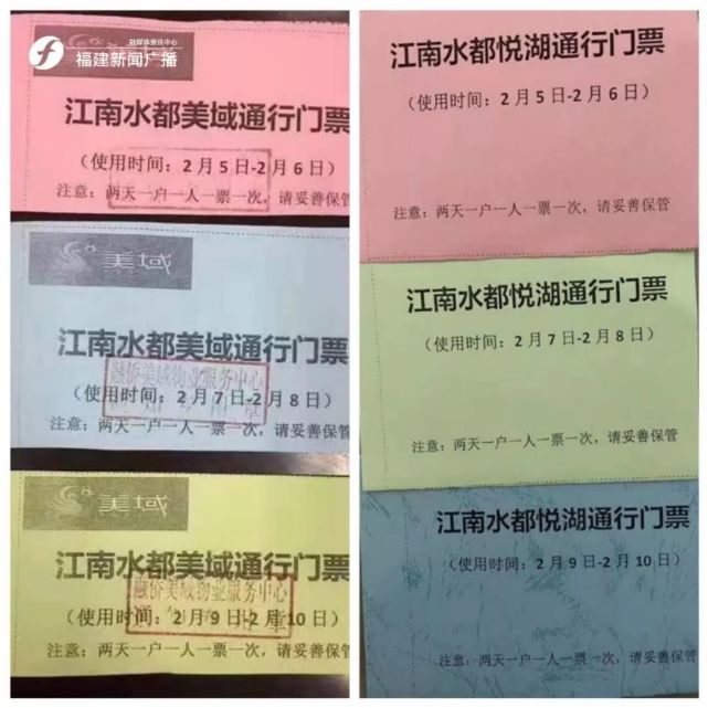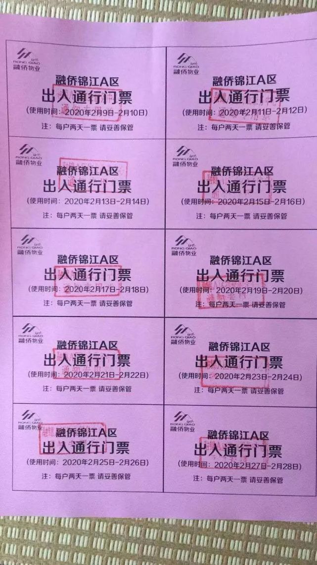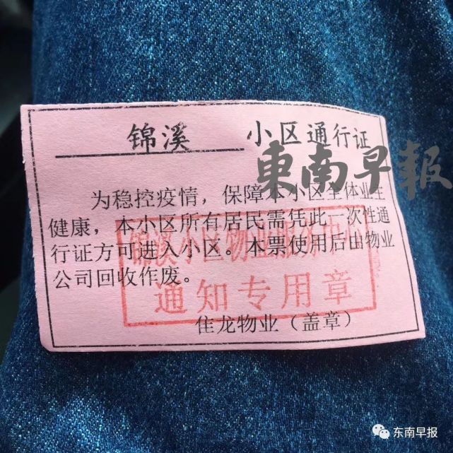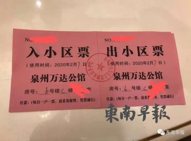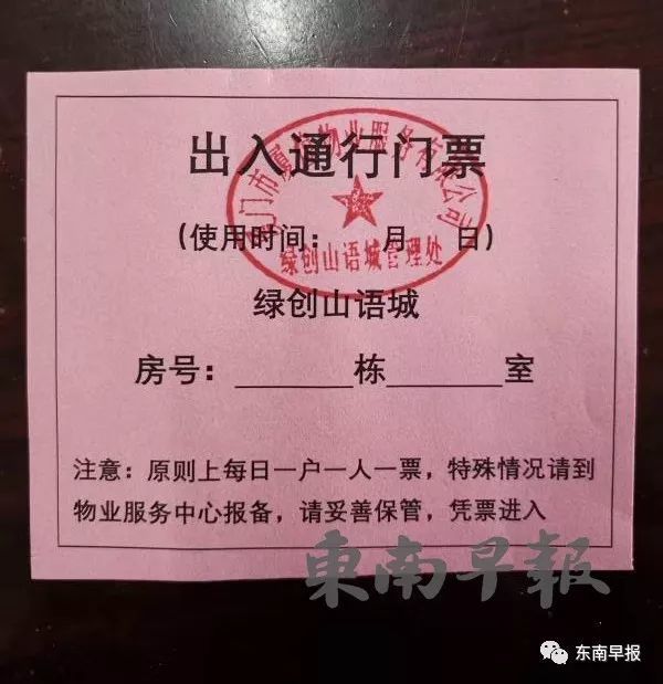 据悉,漳州各小区通行证上登记有每户的编号,姓名,住址,电话等信息,还有若干个方格。一个方格代表一天,居民凭证出小区工作人员就会打一个勾,每户一天只能出去一次,如果看到当天已经打过勾了,就不会再让居民出去。