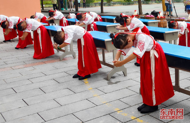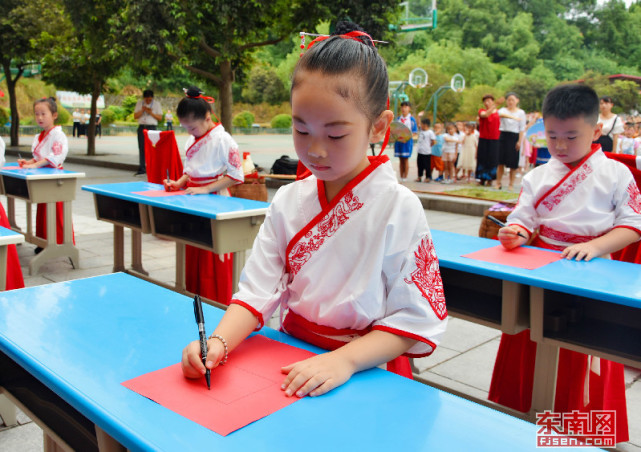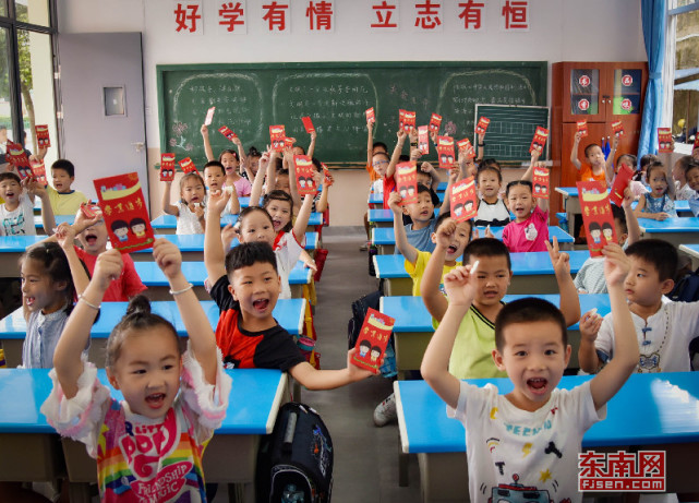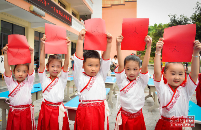 2日,沙县城关第三小学举行以“开笔破蒙 行礼入泮”为主题的新生入学礼。图为孩子们展示自己的作品。