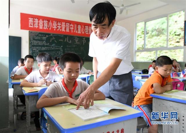 西津畲族小学校长庄桂淦在教室辅导孩子们上早自习(9月4日摄)。