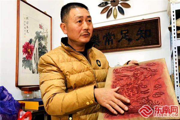 颜仕国展示传统木版《魁星点斗》。东南网记者 陈志远 摄