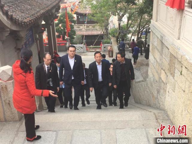 当天上午9时许,林建斌一行登上湄洲码头。湄洲妈祖祖庙董事会董事长林金赞在祖庙圣旨门迎接林建斌一行,并陪同其在天后宫内向妈祖行三献礼。礼毕,众人参观了祖庙建筑群。
