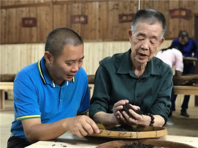 李宗雄(右)在与茶人交流制茶经验。80岁的李宗雄老先生是“唐利号”茶庄李鋼的后人,坦洋工夫茶制作技艺福安市级代表性传承人之一。福安茶业协会供图