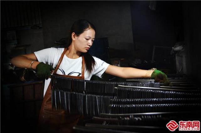 游阿兰,柘荣县富溪镇前宅村人,今年45岁,在宏利星剪刀厂做水磨工,每个月有3500多元收入。她说,在家门口打工,钱赚得稳,还能照顾家庭,她非常满意。目前,除了在刀剪厂工作的工人外,柘荣县还有1万多人从事着与刀剪行业有关的工作,一把剪刀解决了柘荣近五分之一人口的就业问题。