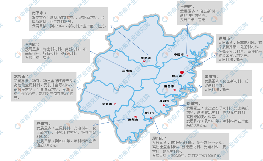 福建省各城市新材料产业布局图