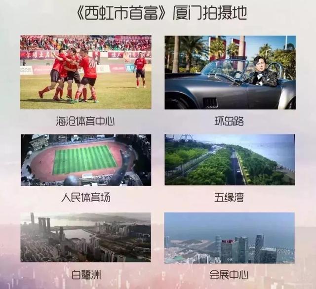 电影插曲中熟悉的水域和远处隐约可见的凯宾斯酒店,筼筜湖无疑了;鹭岛人民再熟悉不过的小红车、红白居民楼,果断是同安旧体育馆;王多鱼推出“脂肪险”,全民健身时跑过的道路,惹眼的童话色彩,是方特梦幻王国;王多鱼遇上碰瓷党,邂逅女主的桥段发生在集美万科里;不能不说的是王多鱼的豪宅,绿化植被、水池铜雕,这是厦门东坪山庄小区,除此之外还有海沧体育中心、环岛路、人民体育场、五缘湾、白鹭洲、会展中心等等。