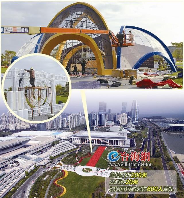 颁奖仪式的红毯场地选址在景色怡人的海边,就在电影节主场馆厦门国际会展中心B8、B9馆(海峡大剧院)前举行。昨天下午,记者在布置现场看到,红毯两侧灯光、展板的搭建已初具雏形。