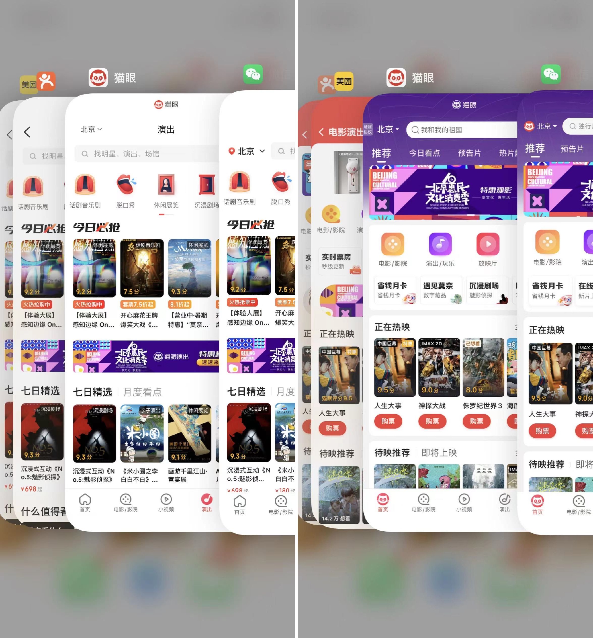 即日起,用户只需身处北京,便可通过猫眼APP、美团、大众点评及微信钱包等入口进入专题页面下单,还可以通过上述入口直接进入演出或影剧院列表页下单。