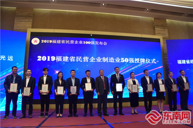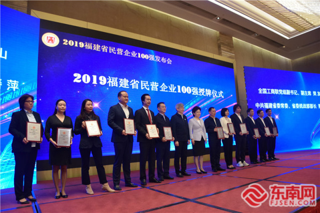 东南网11月19日讯(本网记者 陈佳丽 文/图)11月19日上午,由福建省工商联、福州市人民政府主办的2019福建省民营企业100强发布暨福州市招商推介系列活动在福州举行。活动发布了“2019福建省民营企业100强”(以下简称“百强企业”)“2019福建省民营企业制造业50强”榜单,以及《2019福建省民营企业100强调研分析报告》(下简称“《分析报告》”)和《福建省民营企业社会责任报告》。