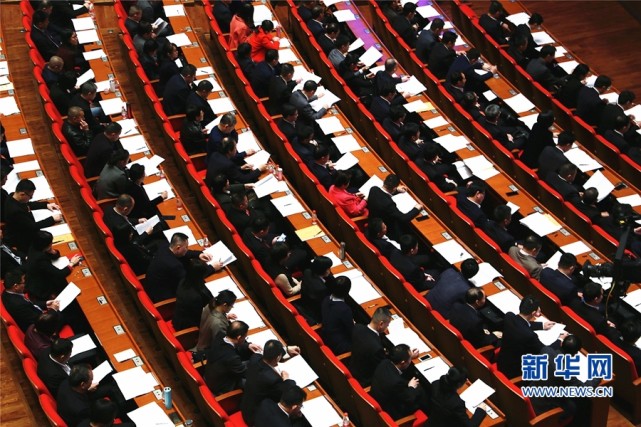 参会代表听取并审议政府工作报告。新华网 王雄 摄