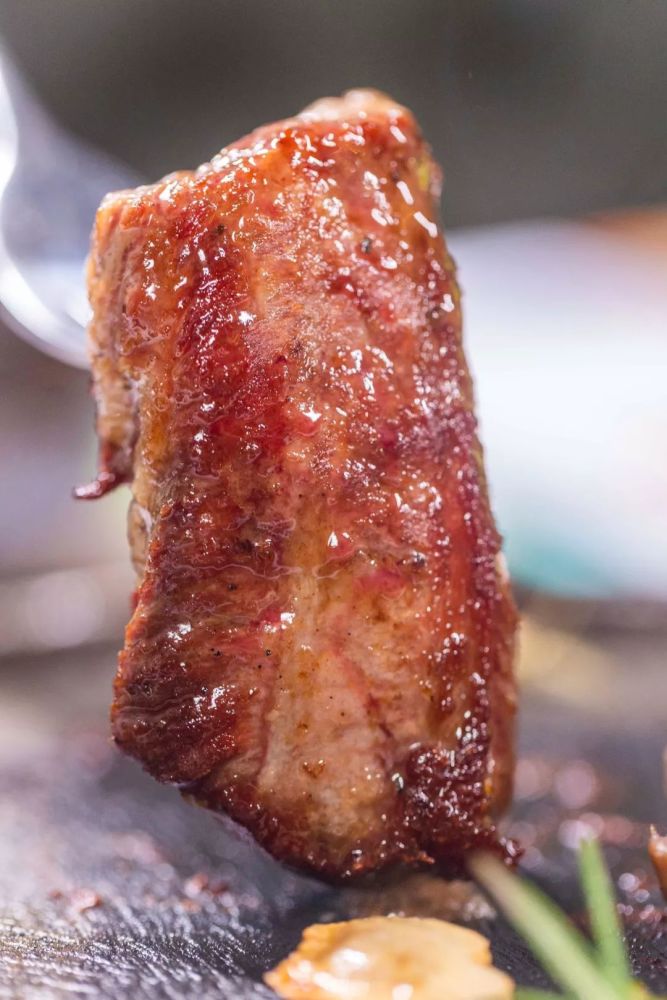 咀嚼间有清爽的迷迭香香气,进口的安格斯牛肉,块块都是油脂分布均匀的实力选手,每一口都被丰腴的肉感征服。