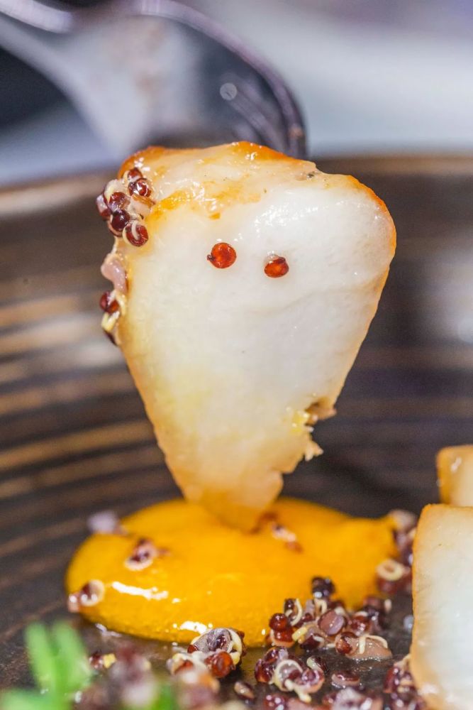刺身级别的雪白带子搭配进口土豆和黑松露,一口一勺,海洋与大地的鲜美都在舌尖汇聚,满嘴都被细腻浓郁温柔包裹。