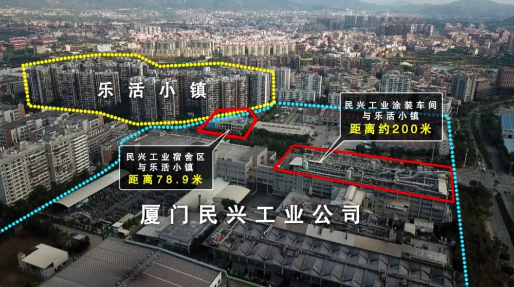 厦门市机械工业集中区一期,集中了65家汽车配套企业。其中,民兴工业与乐活小镇最近距离只有78.9米。民兴工业是一家生产汽车铝合金轮毂的企业。生产过程中有一个喷涂的环节,这个工艺产生的气味不断从厂里飘出来,让乐活小镇的居民十分不满。