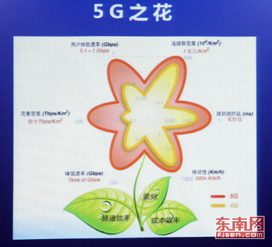 宋俊德教授课件中比喻的“5G之花”(东南网记者 颜财斌 摄)