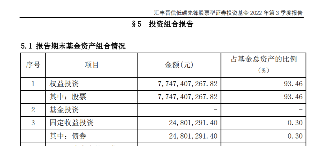 图片来源:汇丰晋信低碳先锋股票三季报
