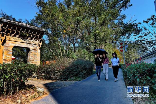11月15日,游客在环境整洁的建瓯市小松镇湖头村游览。
