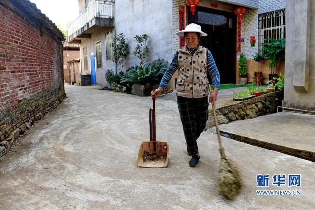 11月15日,村民在建瓯市小松镇穆墩村清扫街道。新华社记者 张国俊 摄