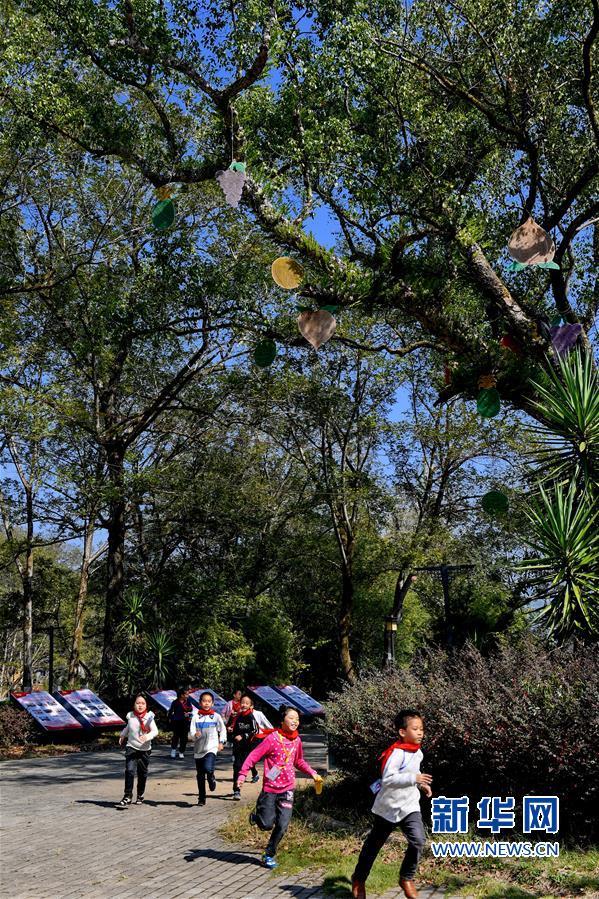 11月15日,小学生在环境整洁的建瓯市小松镇湖头村农民公园玩耍。新华社记者 张国俊 摄