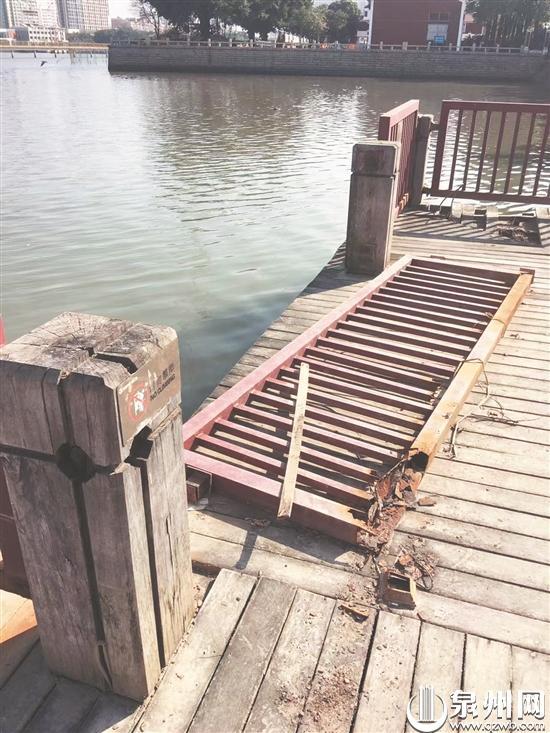 泉州市区浦西水口湖木栈道损毁严重,散步“步步惊心”