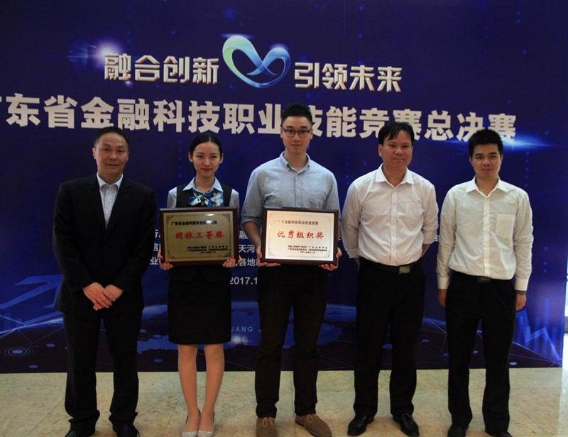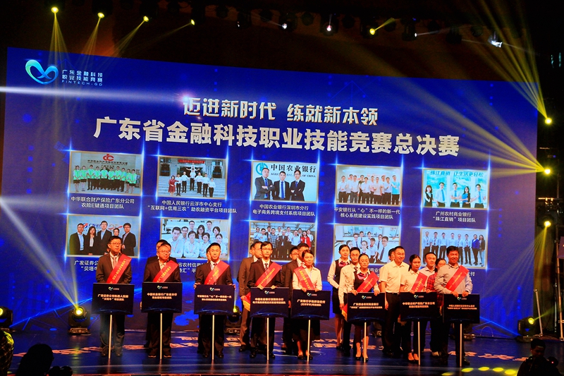 省行科技与产品管理部总经理罗志良(第一排左二)带队参加广东省金融科技职业技能竞赛总决赛。李泽摄