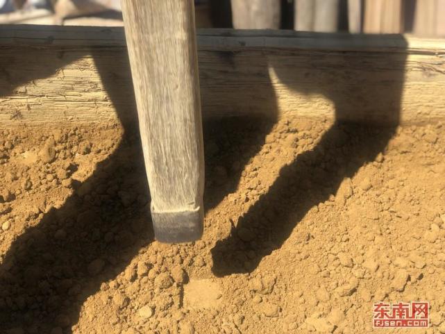 “稀松生土如何蜕变成坚如石头的墙体?层层往上叠加的夯土如何保证不坍塌?土楼墙体遇水如何保证不松软?土楼夯筑首先必须思考并解决这些难题。”简荣伟表示,土楼夯筑并不是在几片木板几根木棒组合成的夯筑工具下把生土夯实这么简单,“事实上,它对生土材质选取及分量、人力投入、铺设松木片、夯筑技术、时节天气、夯筑周期等方面都很有讲究”。