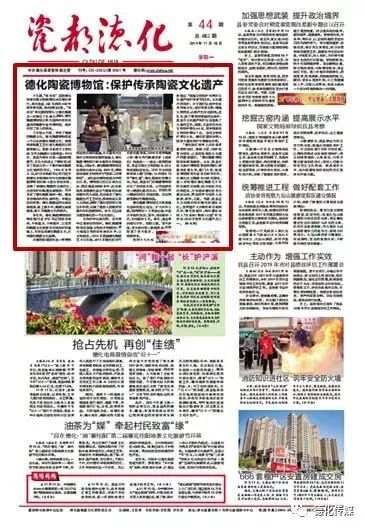 11月8日出版的《瓷都德化报》刊发了题为《德化陶瓷博物馆:保护传承陶瓷文化遗产》的报道。
