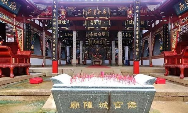 同时,侯官城隍庙大气辉煌。始建于唐武德年间,与侯官置县时间相同,距今已有1300多年。在庙前竖立一块清道光二十一年(公元1841 年)的“重修城隍庙碑”,上面写道:“吾乡之祀城隍也,自唐武德中置县而始,阙后县有治。贞元初,邑改,庙仅存焉。”简单阐述了城隍庙的变迁史。城隍庙正门门额上镶嵌有一块唐代青石门额横匾,刻“唐城隍庙古迹”六字。竖匾上书“城隍庙”三个大字。