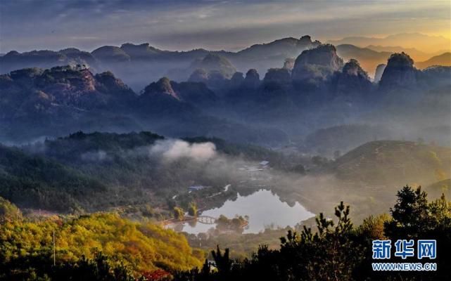 这是武夷山齐云峰晨曦(11月17日摄)。新华社记者 张国俊 摄