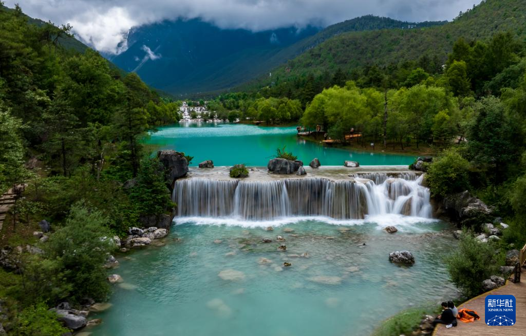 6月26日,游客在位于玉龙雪山脚下的蓝月谷游览。据云南省丽江市玉龙雪山省级旅游开发区管委会介绍,近日,玉龙雪山景区旅游持续回暖,游客数量显着增长。新华社记者 江文耀 摄