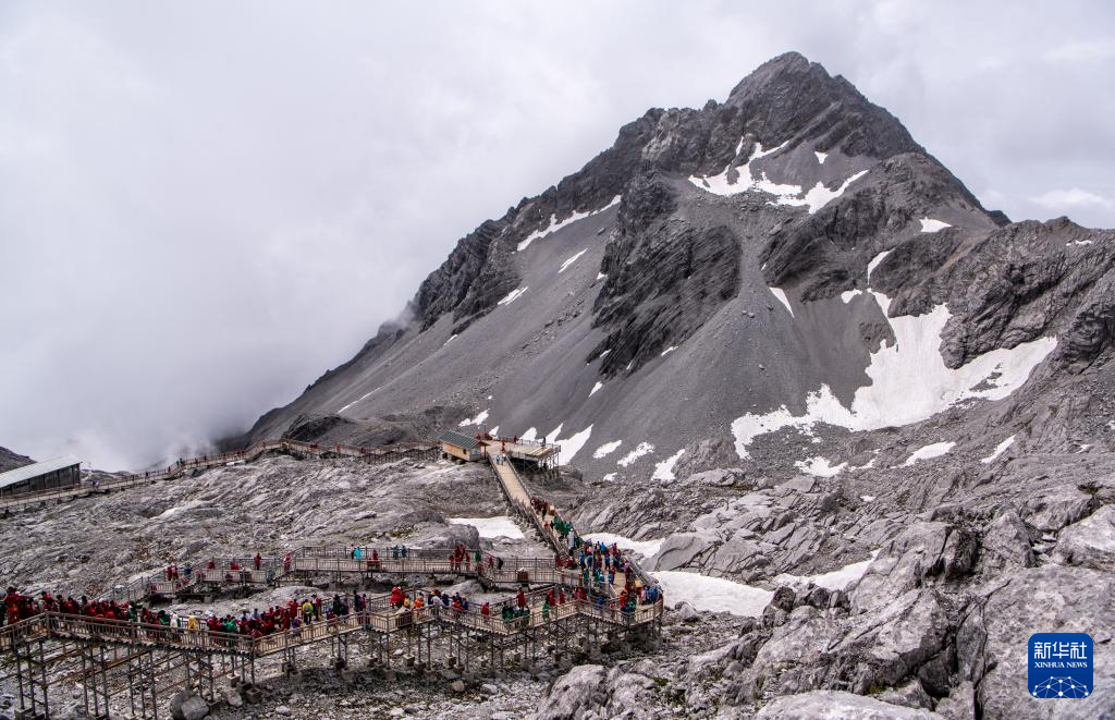 6月26日,游客在玉龙雪山景区游览。据云南省丽江市玉龙雪山省级旅游开发区管委会介绍,近日,玉龙雪山景区旅游持续回暖,游客数量显着增长。新华社记者 江文耀 摄