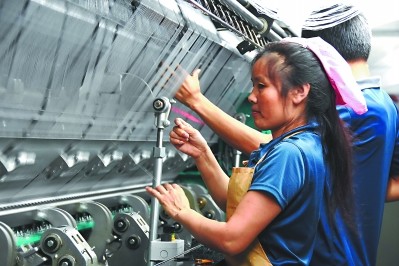 位于秀屿区东峤工业园区的华峰集团车间内,员工在纺织制鞋面料。刘金通摄